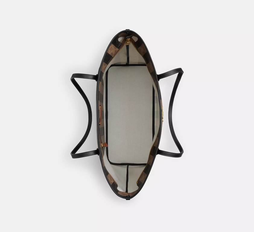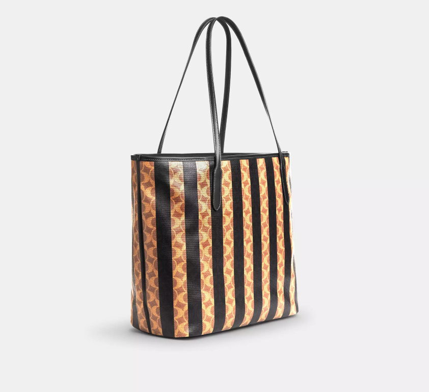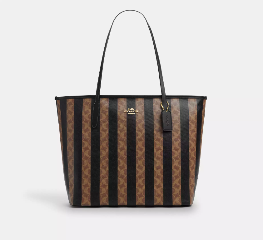 COACH City Tote Bag Kadın Kol Çantası Kanvas Çizgili Siyah Kahverengi Coach Baskılı