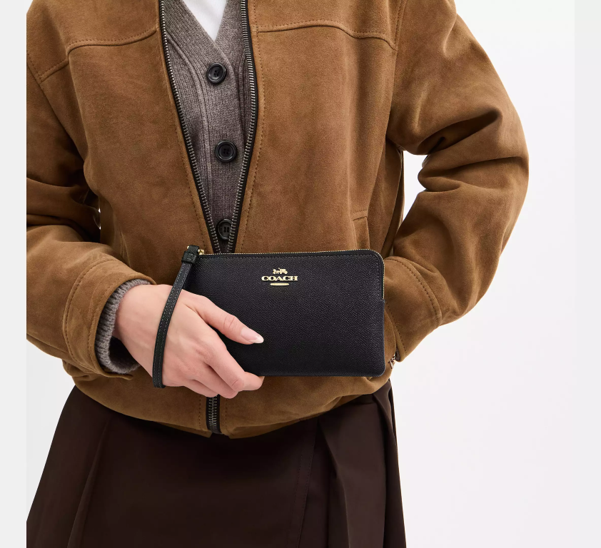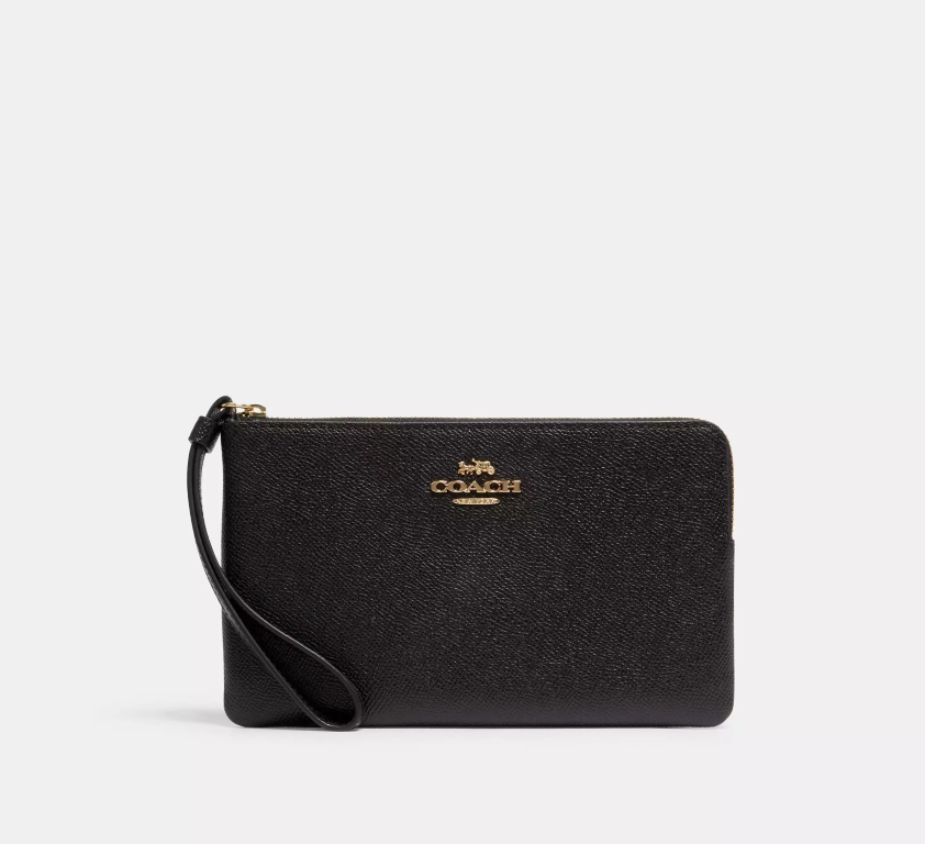 COACH Large Cüzdan Köşe Fermuarlı Bileklikli Deri Siyah