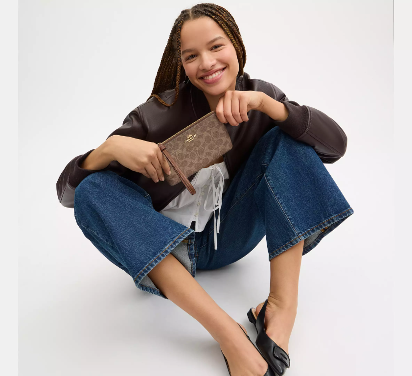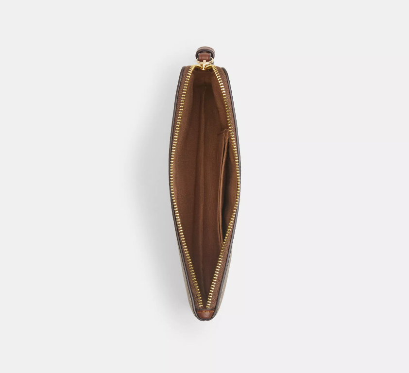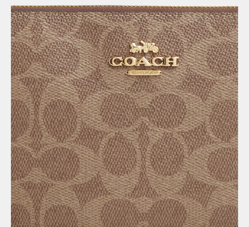 COACH Large Cüzdan Köşe Fermuarlı Bileklikli Kanvas Açık Kahverengi Coach Baskılı