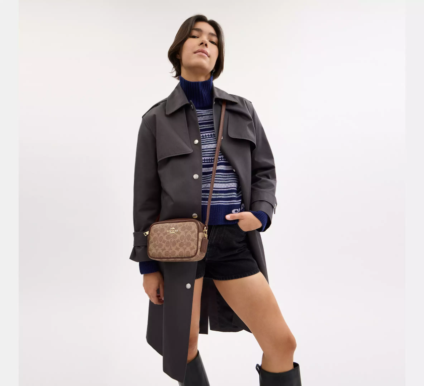 COACH Mini Jamie Kadın Çantası Kanvas Kahverengi Camera Bag Coach Baskılı
